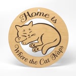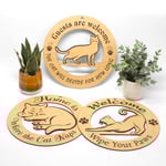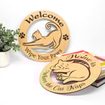 Add a warm, playful touch to your entryway with these charming cat-themed wooden welcome signs. Each round sign is beautifully crafted from natural wood and features an engraved cat illustration paired with a lighthearted message that every cat lover will appreciate.