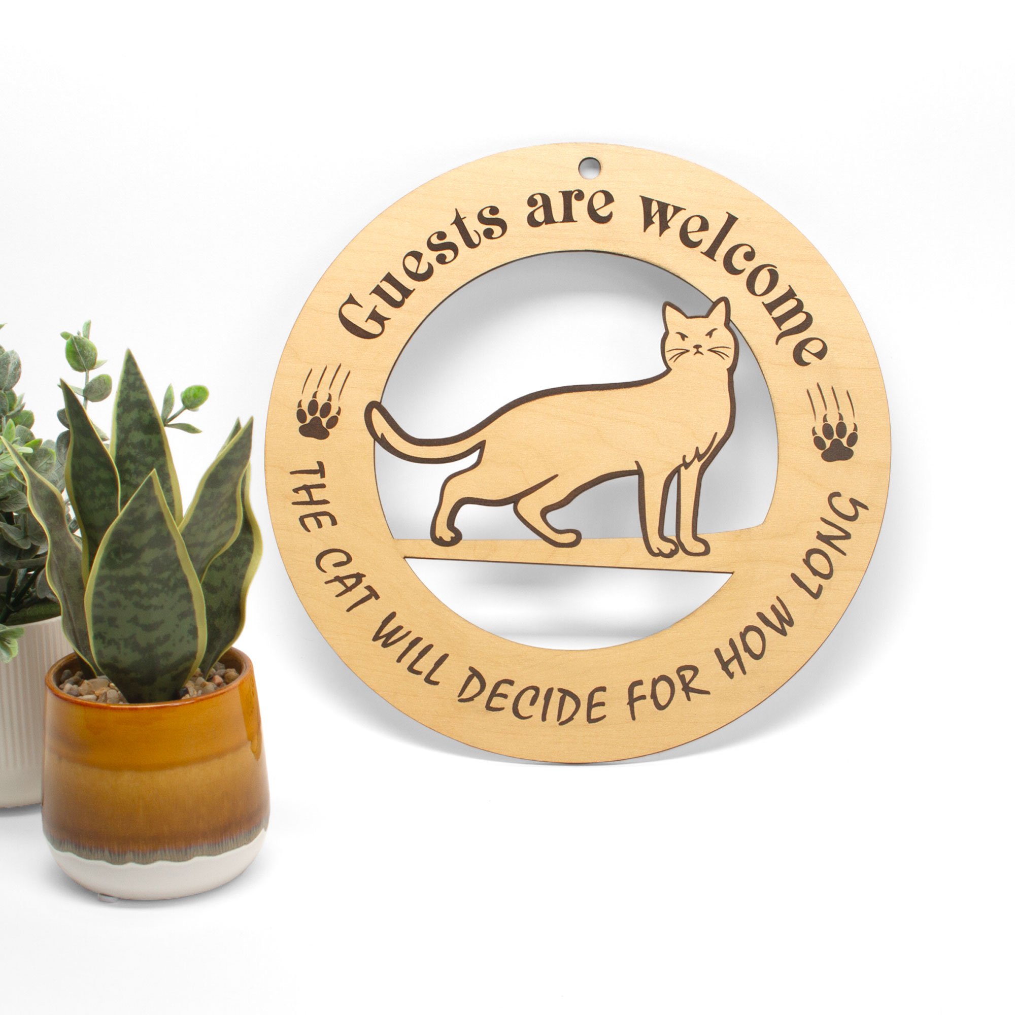 Rustic Cat Welcome Sign | Engraved Wooden Cat Door Décor | Cat Lover Gift