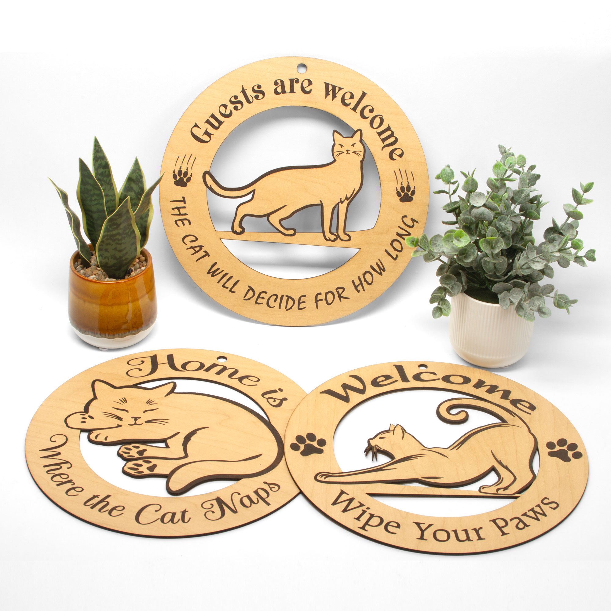 Perfect for front doors, porches, mudrooms, or indoor walls, these signs make a delightful accent for your own home or a thoughtful gift for cat moms, cat dads, and pet lovers alike. Lightweight and easy to hang, they’re a simple way to welcome guests with personality and charm.